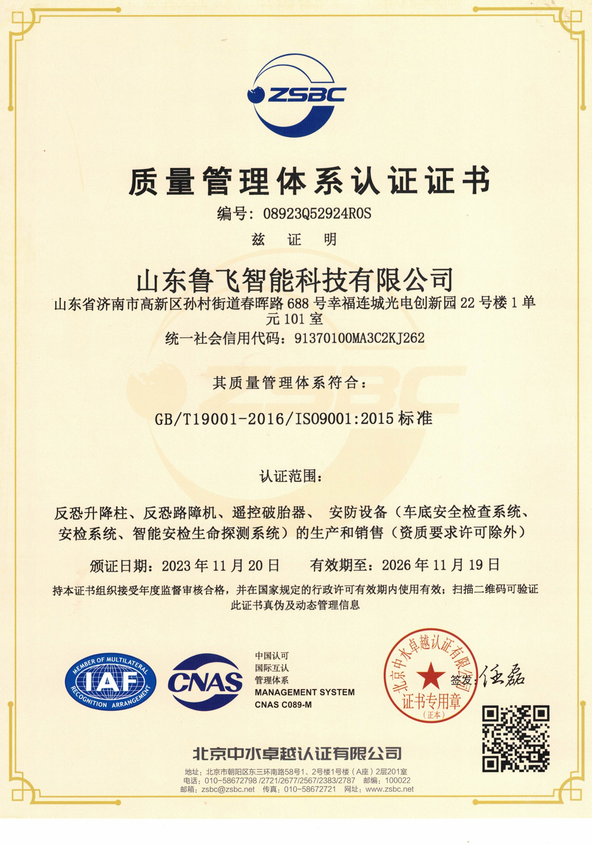 魯飛智能科技有限公司是集“設計、研發(fā)、生產、銷售”為一體的高新技術企業(yè)。專業(yè)從事反恐防暴升降路樁、防暴路障、破胎器、車底檢測系統(tǒng)、微震生命探測儀、安檢門、安檢機、拒馬、電動伸縮門、無人機反制系統(tǒng)、無人機反制槍、車載無人機反制、便攜式無人機反制槍等系列產品的生產與銷售。